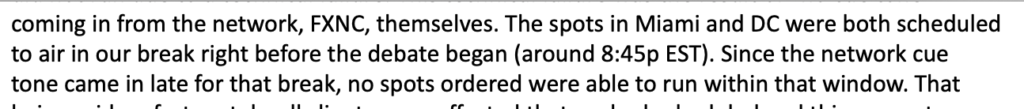 So, it was with a nod to the Ailes chapters in political history that Comeback Productions decided to run ads for Man in the Arena before and after the Trump-Biden debate on Tuesday October 29. The ad was delivered in the correct format, the hefty payment was made, and a cable provider confirmed the ad was scheduled to run on Fox affiliates in select markets. Fox affiliates? Well, yes. We don’t think MSNBC viewers would buy a film about Roger Ailes.