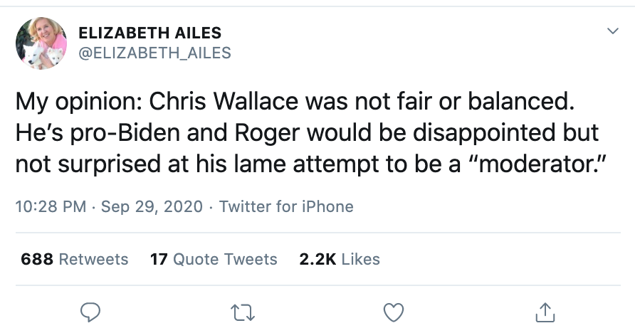 Would this have happened under Roger Ailes’ leadership? Many feel that the post-Ailes, a decidedly more liberal Fox News made a critical error by allowing Wallace to moderate. As they say, when a journalist becomes the story, it’s a problem. We were intrigued to see a chorus of agreement arise when Mrs. Ailes weighed in here: